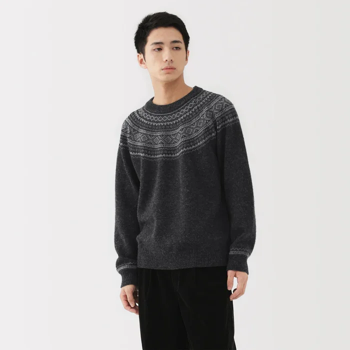 Muji’s Andes Wool Jacquard Sweater is the statement knit that still plays well with everything in your closet. Spun from 100% wool sourced from sheep raised high in the Andes mountains, the yarn is naturally voluminous and resilient, which translates into serious warmth without bulk. The jacquard pattern adds refined texture and visual interest, so it reads as considered and modern rather than “just another winter sweater.”