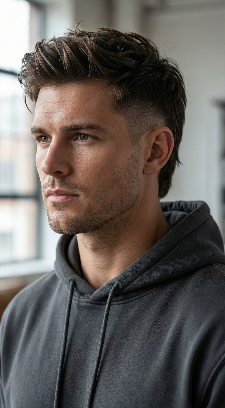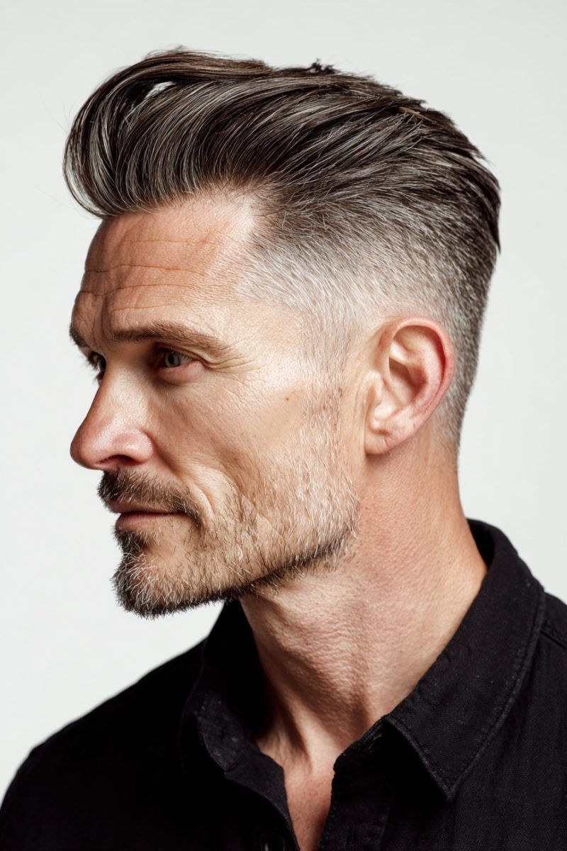 In 2026, the pompadour is less Elvis and more polished gentleman. It combines close-cropped or faded sides with a voluminous top that’s swept back, and it looks equally good with a leather jacket or a sharp blazer. This is the highest-maintenance cut on this list it requires a blow-dry and some volumizing product but for men who enjoy a grooming routine, few mens hair cuts make a stronger impression.
