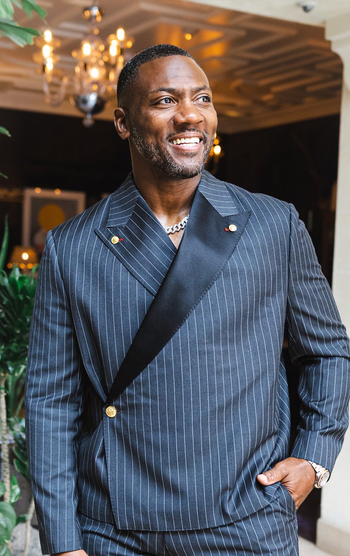 He laughs, recalling the little ways he maintains balance. Even in airports, life finds its quirks: TSA always pulls him aside for the small container of salt he carries with him. “Do you guys know you can’t bring salt in the airport?” he says, with a smile. Since giving up coffee, he starts his mornings with an electrolyte packet in water and a pinch of pink salt. “It just helps me hydrate.”