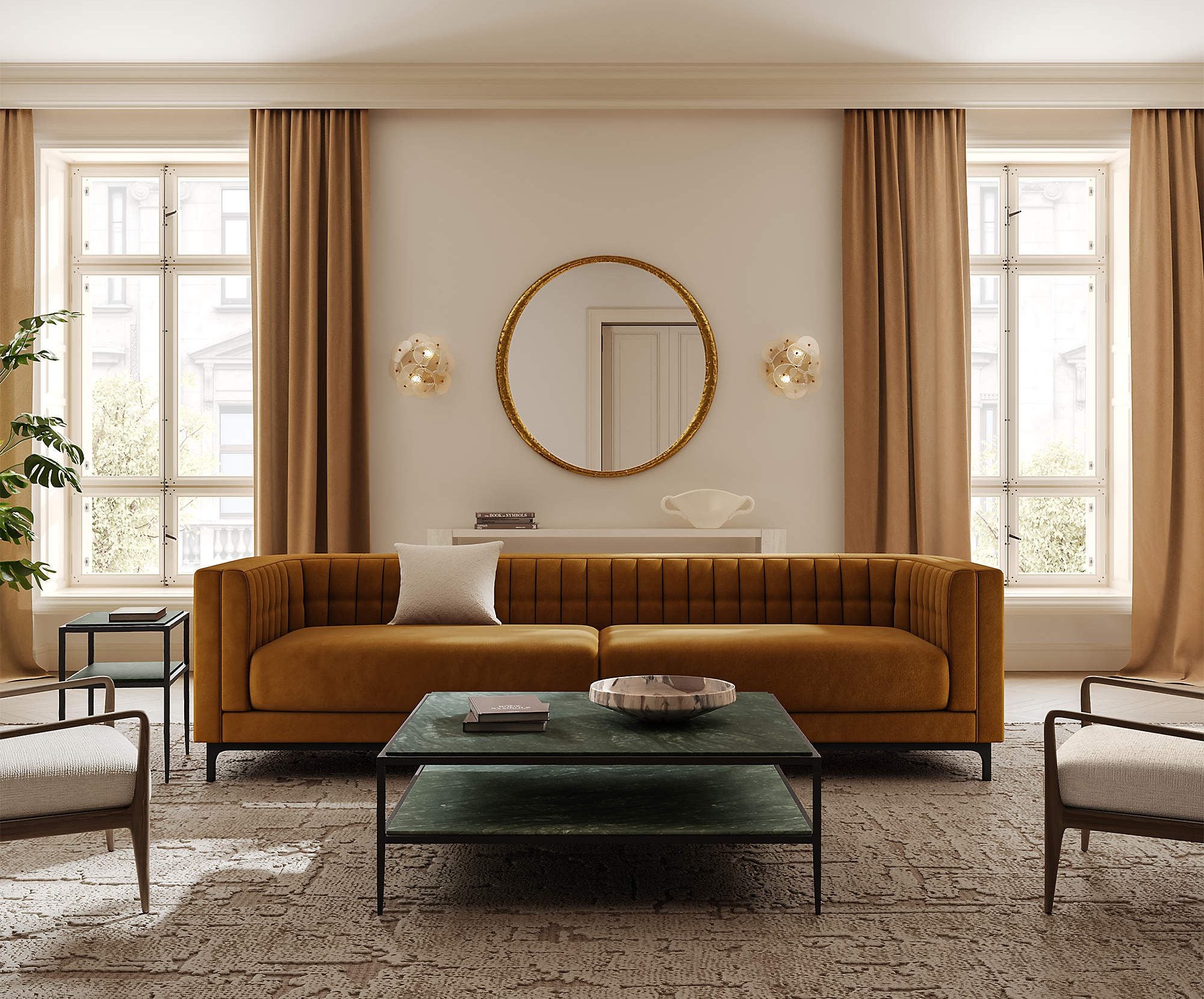 Ambroise 104″ Amber Velvet Sofa