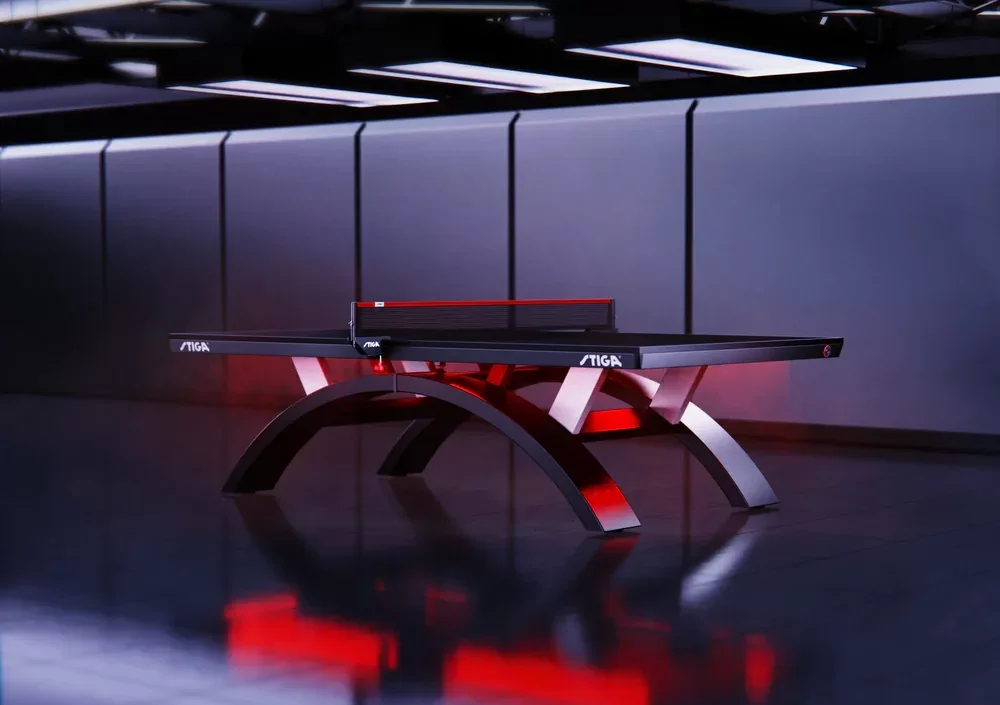 Transform your ultimate man cave into a high-energy entertainment zone with this competition-level table tennis centerpiece. Built with a professional 25mm tournament-grade play surface, the Paragon delivers exceptional bounce, speed, and consistency for serious gameplay or casual matches with friends. Its sculpted arc-leg design combines architectural aesthetics with structural strength, reinforced by an aircraft-grade aluminum frame and dual-bow chassis for rock-solid stability. Integrated adjustable LED lighting adds a dramatic glow that enhances atmosphere during night games or social gatherings. A premium tension-adjustable net ensures accurate performance, while multi-point leveling keeps the playing surface perfectly balanced. More than just a game table, the Paragon is a bold statement piece that blends sport, design, and immersive entertainment — perfect for creating a dynamic social hub inside a modern man cave.